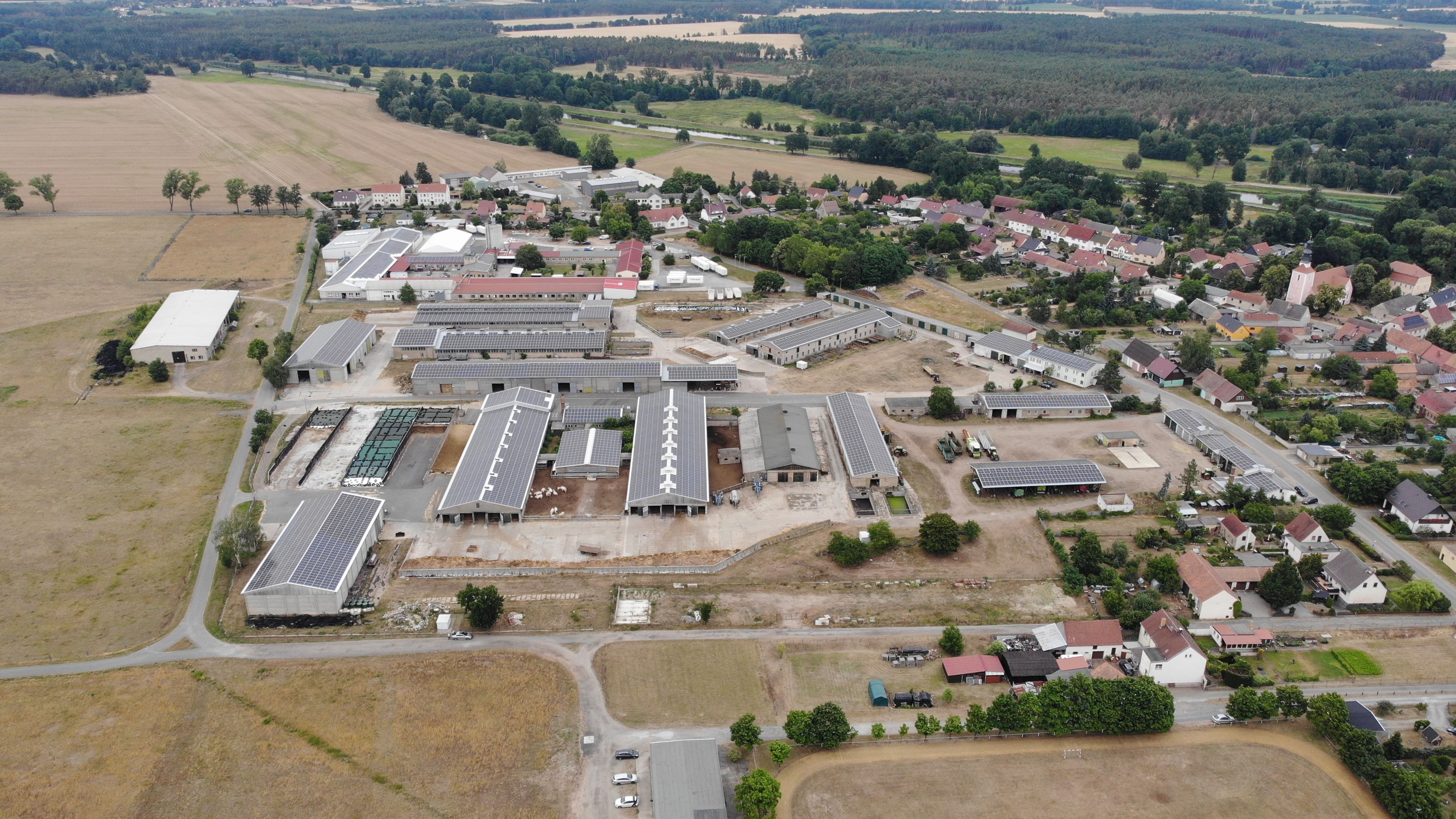 - landwirtschaftliche Gebäude wie Stallungen, Maschinenhallen oder Lagerhallen